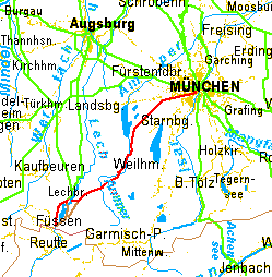 Tracks bei GPSies: • München Füssen • Füssen München |